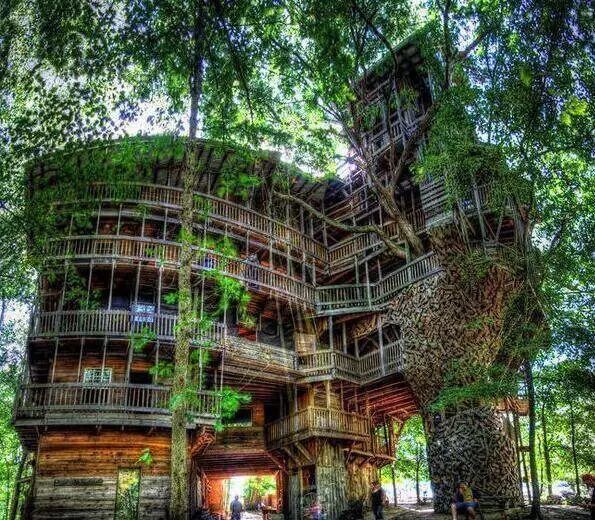 位于美国田纳西州的Crossvill,是由景观设计师Horace Burgess用了十四年的时间,建造有着八十间房的树屋。它也堪称是世界上最大的树屋。