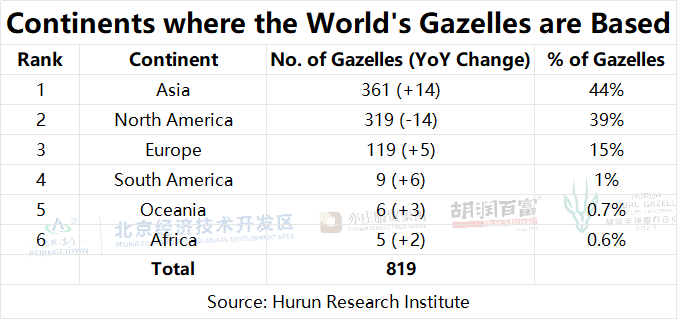 In terms of regional contributions, Asia overtook North America as the leading continent for creating the most Gazelles globally, followed by Europe.
