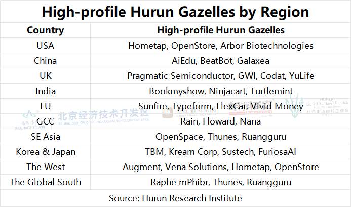 Table 6: High-profile Hurun Gazelles by Region