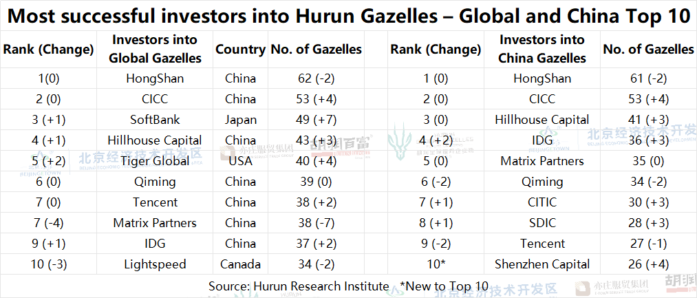 Table 10: Most successful investors into Hurun Gazelles – Global and China Top 10