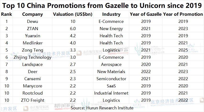 Table 13: Top 10 China Promotions from Gazelle to Unicorn since 2019