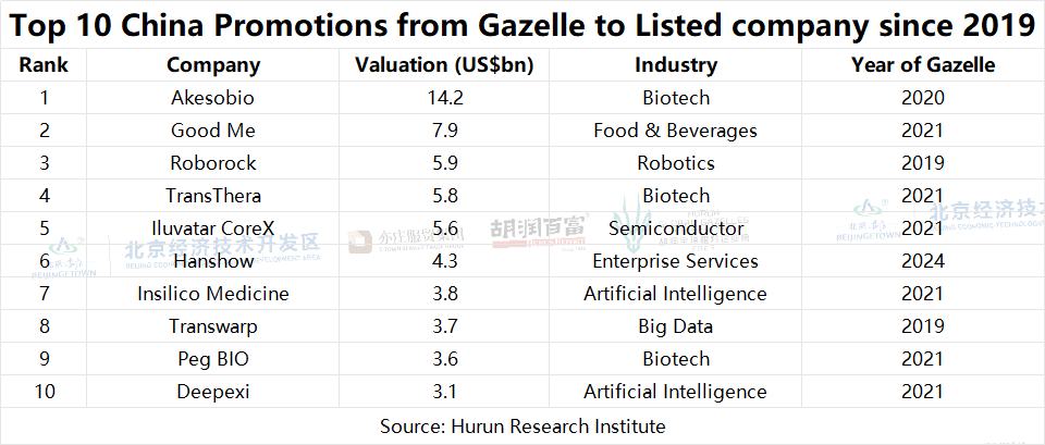 Table 14: Top 10 China Promotions from Gazelle to Listed company since 2019