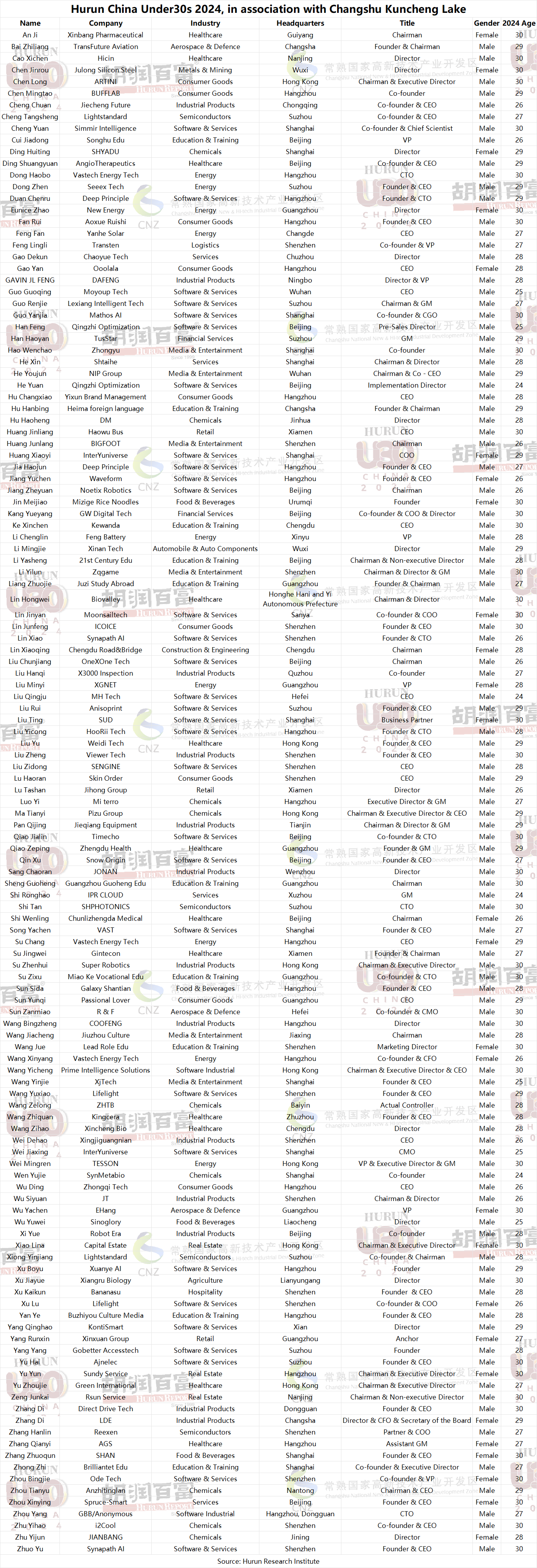 (8 May 2025, Changshu) The Hurun Research Institute today released the Changshu Kuncheng Lake · Hurun China Under30s 2024, a list of China’s most successful entrepreneurs aged 30 and under. This is the eighth year of the list.