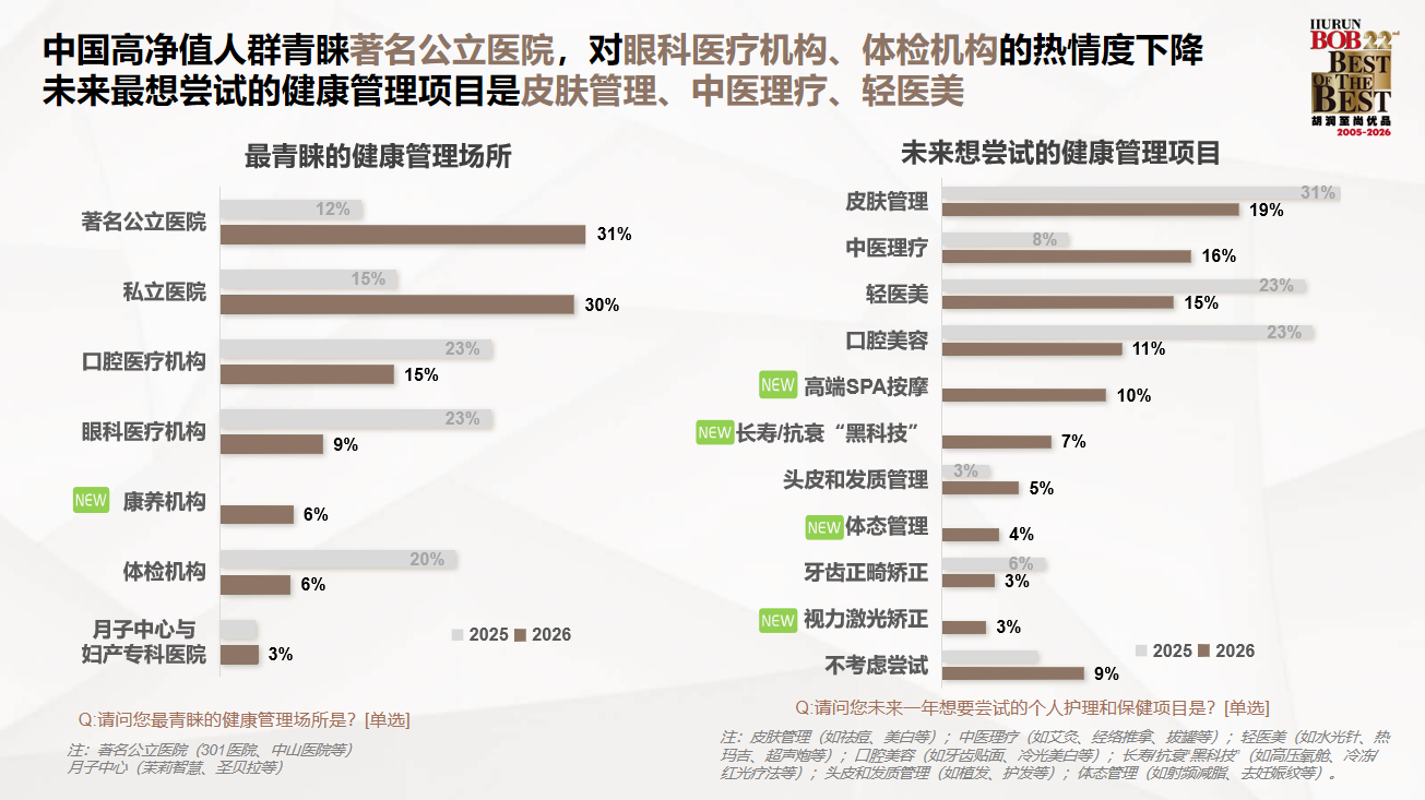 “立足长寿时代,健康成为高净值人群首要投资方向。‘健康与保健’支出意愿飙升至计划增加消费类别的第二位。健康管理从‘治疗’转向‘预防 + 康养’,精细化、场景化的健康需求成为新增长点,比如对中医理疗的热情大幅上升。”
