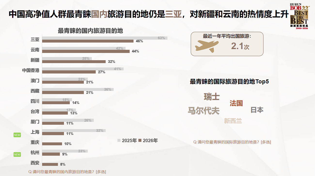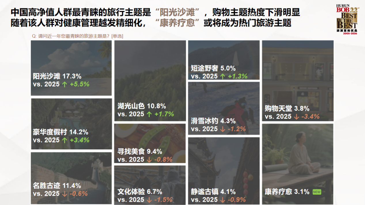 高净值人群的消费重点从物质转向服务体验与情绪价值,高端服务(如酒店、旅游)的热度持续上升。其中,旅游市场涨势最明显,休闲旅行增长11%,商务旅行增长8%。