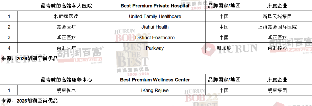 和睦家医疗荣获高净值人群最青睐的高端私人医院,第二名是嘉会医疗,卓正医疗和百汇医疗分别位列第三和第四。爱康悦养荣获高净值人群最青睐的高端康养中心。