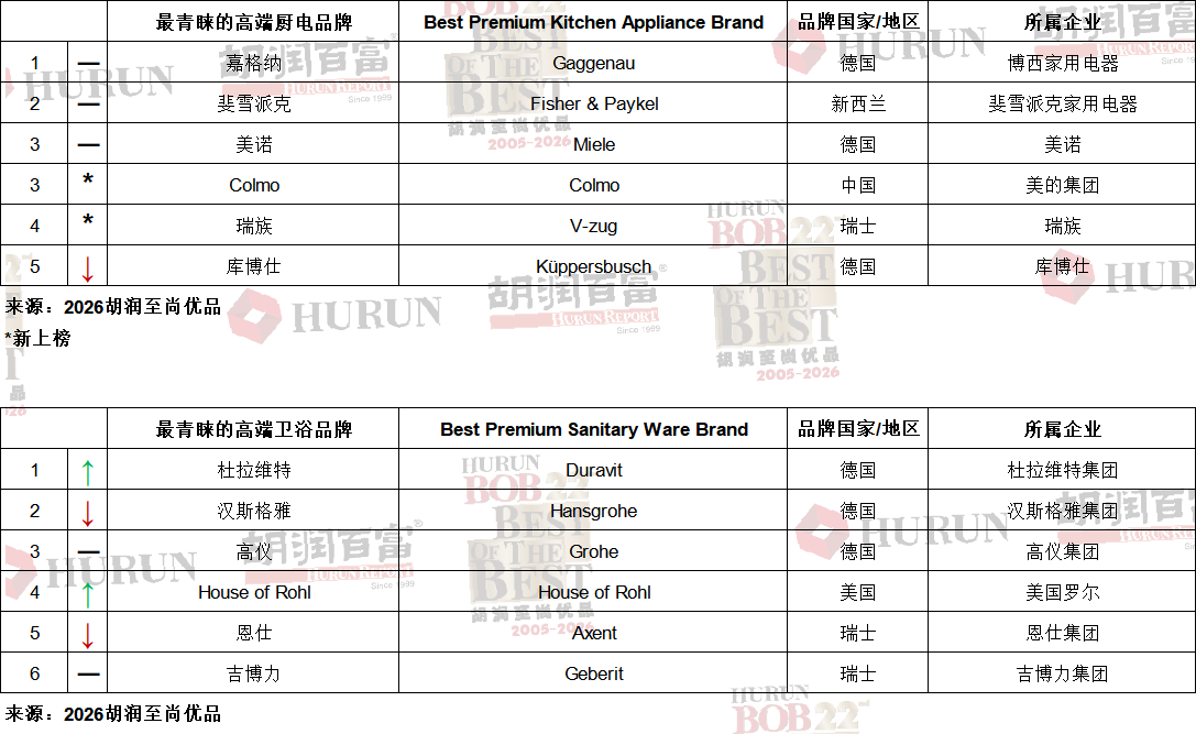 在厨卫领域,嘉格纳荣膺最受青睐的高端厨电品牌榜首,Colmo和瑞族成功跻身榜单,库博仕降至第五位。杜拉维特荣登最受青睐的高端卫浴品牌第一名,汉斯格雅位列第二,高仪保持第三。House of Rohl和恩仕则分别位列第四、第五名。