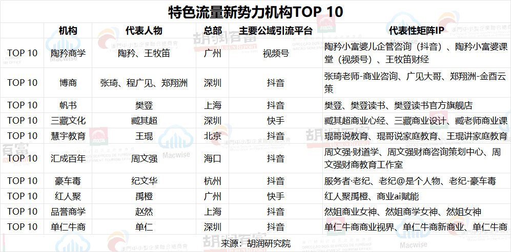 一些特色机构在公域流量平台通过直播、短视频矩阵IP获取公域流量,再进行系统化私域运营转化为付费用户,形成“短视频引流→私域沉淀→课程转化”的完整路径。但由于缺乏公域转私域的相关数据,这些机构并未被纳入本次流量新势力百强榜。